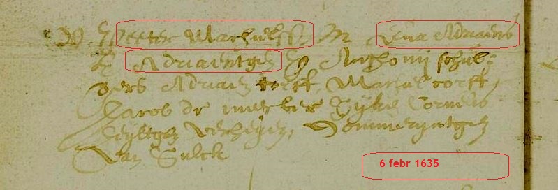 Adriaentgen/ Adriaantje febr 1635 klik hier voor meer info