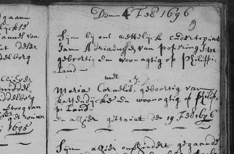 att: one of his son's...Adriaan 1696 (Bruinisse), is child 1st marr. Jan v.P.,