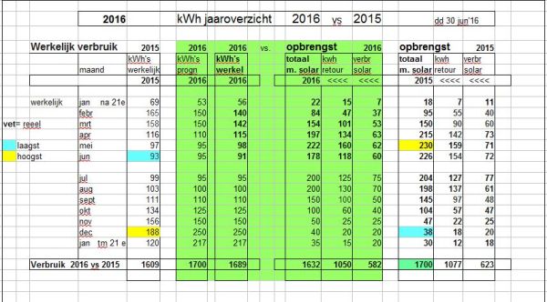 De opbrengst van de installatie is te zien in de volgende tabellen.